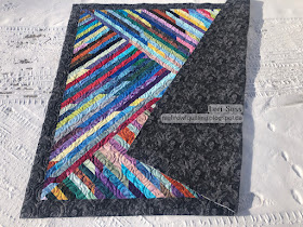 We didn't want any of the donated strips to go to waste, so  we came up with a creative way to use them up.  A fun variation on a Jelly Roll Race quilt.