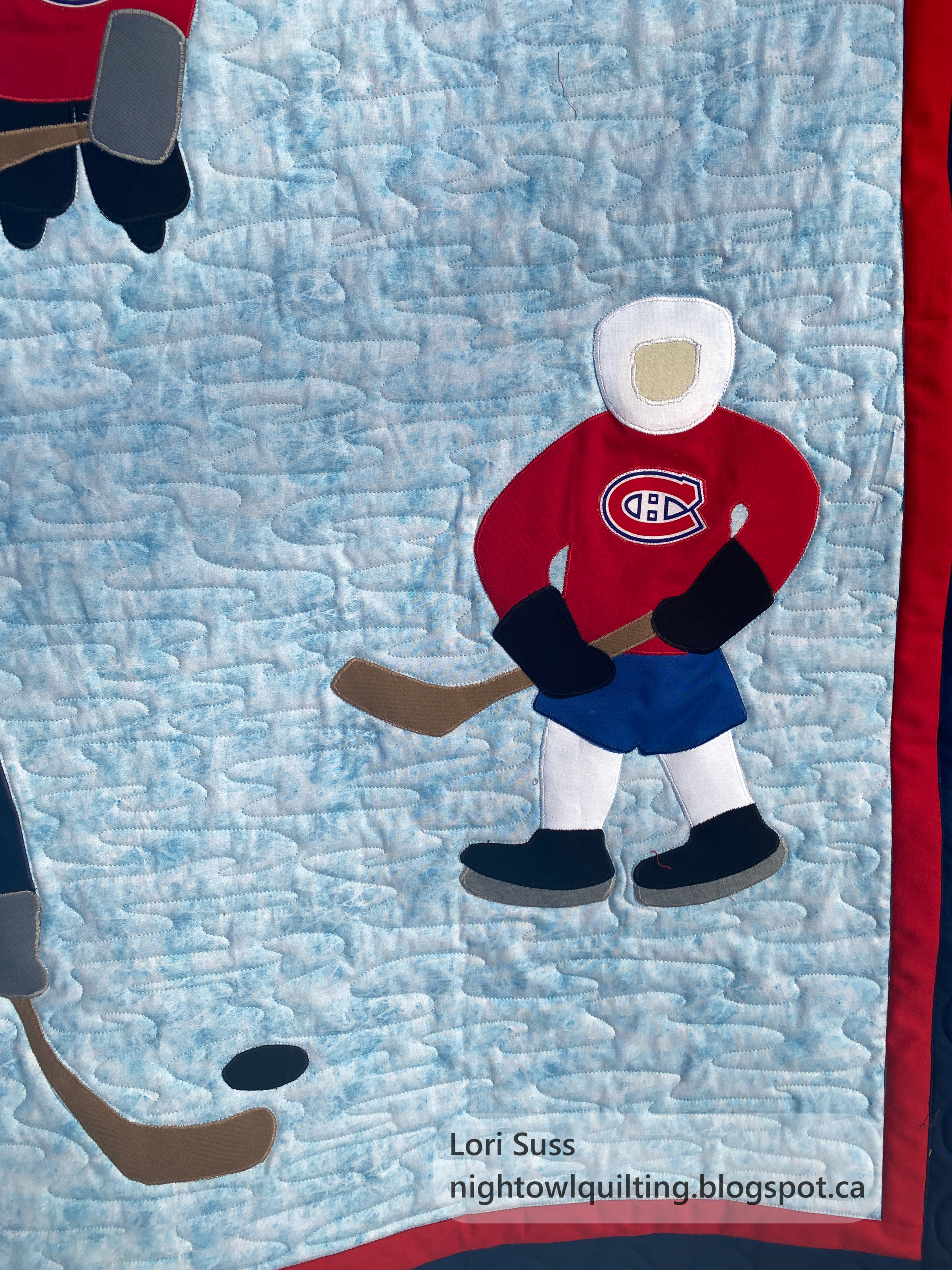 Audrey made this super fun baby quilt for her nephew and his wife who are expecting a baby very soon. Mom and Dad cheer for different teams and Audrey found the perfect way to include both the Montreal Canadiens and the Winnipeg Jets in a gift for the baby.