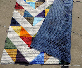 I'm not sure it is easy to get a sense of the size of this quilt, but there will be no cold toes sticking out the bottom! This is the longest quilt I have tackled so far at 130". I am thankful that I am not the one who has to tackle all the binding, but I know you are up to the task Cindy!